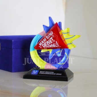 Plakat fiber ini adalah pilihan sempurna untuk memberikan penghargaan yang berkesan dan modern. Dibuat dengan desain yang kreatif dan futuristik, plakat ini menonjol dengan bentuk yang tidak biasa dan warna-warni yang cerah. Fitur Unggulan: Material Berkualitas: Terbuat dari fiber yang dibentuk dengan presisi, memberikan tampilan yang jernih seperti kaca namun lebih ringan dan tahan pecah….
