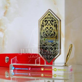 Plakat ini adalah pilihan yang unik dan berkelas, memadukan keindahan desain etnik dengan fungsi praktis. Plakat ini sangat ideal sebagai hadiah eksklusif untuk pejabat, penghargaan, atau cinderamata yang mencerminkan kekayaan budaya. Fitur Unggulan: Kombinasi Material: Plakat ini memadukan fiber bening yang tebal sebagai alas fungsional dan plat kuningan sepuh emas dengan motif ukiran laser di…