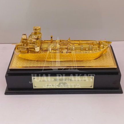 Miniatur kapal yang indah dan sangat detail ini adalah perpaduan sempurna antara keindahan maritim dan penghargaan akademik/korporat. Dengan finishing emas murni, plakat ini melambangkan prestasi, kerja keras, dan peran vital di bidang pelayaran dan energi.