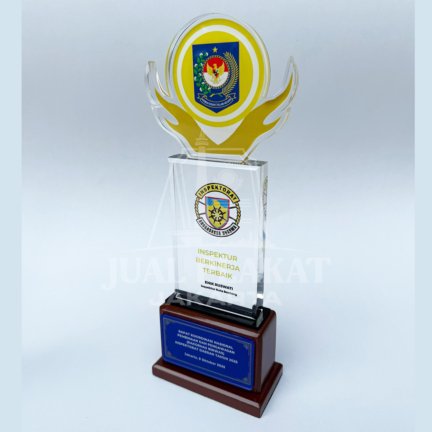 - Badan Plakat: Akrilik balok persegi panjang yang dicetak detail penghargaan, seperti “Inspektur Berkinerja Terbaik” dan nama penerima.
