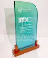 - Tatakan Kayu Solid: Dilengkapi dengan tatakan kayu berwarna cokelat kemerahan yang kokoh, menjamin plakat berdiri tegak dan menawan, siap dipajang di meja kerja, rak buku, atau ruang kantor kehormatan.