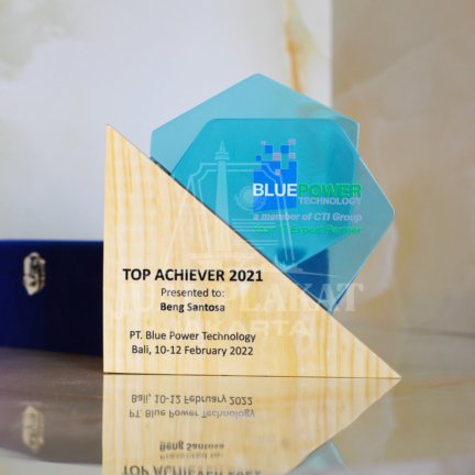 Plakat ini adalah simbol apresiasi atas pencapaian luar biasa yang menggabungkan keindahan alami kayu dan kejernihan Fiber biru. Didesain secara eksklusif untuk penghargaan “Top Achiever 2021” yang diberikan kepada Bapak Beng Santosa dari PT. Blue Power Technology.