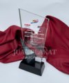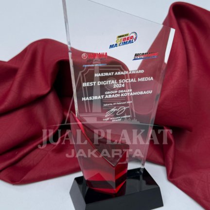 Berikan apresiasi terbaik dengan plakat yang menggabungkan kemewahan Akrilik Kristal dan sentuhan seni Resin Cair. Desain asimetris yang modern memberikan kesan futuristik, sangat cocok untuk penghargaan korporat, kenang-kenangan instansi, maupun kado spesial.