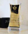 - Material Premium: Terbuat dari perpaduan fiber berkualitas tinggi yang bening dan plat kuningan sepuh emas. Kombinasi ini memberikan tampilan yang sangat mewah dan kokoh, menyerupai plakat kristal dengan sentuhan elegan.