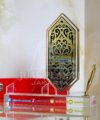 - Kombinasi Material: Plakat ini memadukan fiber bening yang tebal sebagai alas fungsional dan plat kuningan sepuh emas dengan motif ukiran laser di bagian tengah. Plat kuningan diukir dengan detail motif tradisional yang indah, memberikan kesan seni yang tinggi.