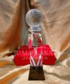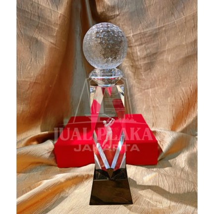 • Ornamen Bola Golf Kristal: Bagian atas trofi dihiasi dengan ukiran bola golf kristal yang detail dan berkilauan.