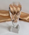 - Bahan dan Desain: Terbuat dari kristal bening yang berkualitas tinggi, plakat ini memiliki bentuk memanjang dengan sisi-sisi yang dipotong (faceted), menciptakan kilau yang indah saat terkena cahaya. Desainnya yang ramping dan simetris memberikan kesan profesional dan premium.