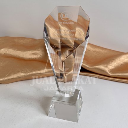 Plakat ini adalah sebuah trofi kristal yang menawan dan elegan, dirancang khusus untuk penghargaan Loyalty Award dari UD Trucks. Plakat ini menonjolkan desain yang modern dan berkelas, menjadikannya simbol apresiasi yang tinggi.