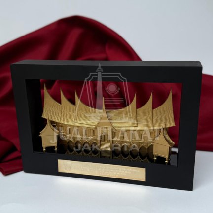 Abadikan kemegahan warisan budaya Nusantara dengan Plakat Miniatur Rumah Gadang yang eksklusif. Dibuat dengan detail arsitektur yang presisi, miniatur ini merepresentasikan kebanggaan adat Minangkabau dalam balutan warna emas yang mewah, menjadikannya simbol penghargaan yang sangat bernilai seni tinggi.