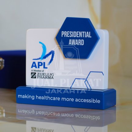 Plakat ini adalah representasi dari pengakuan tertinggi, “Presidential Award,” yang diberikan untuk kinerja luar biasa. Plakat Akrilik APL ini dirancang khusus untuk menghormati para individu yang telah memberikan kontribusi signifikan dalam upaya “making healthcare more accessible.” Bentuknya yang kokoh dan desainnya yang jelas menjadikannya simbol pengakuan yang pantas dan berharga.