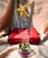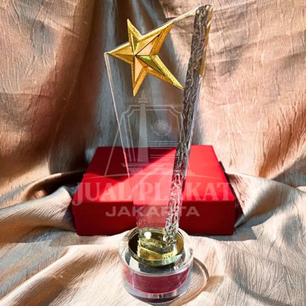 - Alas Kokoh: Dudukan plakat terbuat dari kristal tebal dengan detail warna emas dan merah, memberikan stabilitas dan sentuhan mewah.