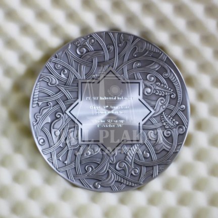 Hadirkan penghargaan yang tak lekang oleh waktu dengan Plakat Timah 30th Anniversary PT. SKF Industrial Indonesia ini. Didesain dengan detail ukiran yang memukau, plakat berbentuk bulat ini memancarkan keanggunan klasik dan nilai seni yang tinggi. Motif-motif rumit yang terukir di sekelilingnya menciptakan kesan mewah dan historis, menjadikannya simbol sempurna untuk perayaan penting dan pencapaian jangka panjang.