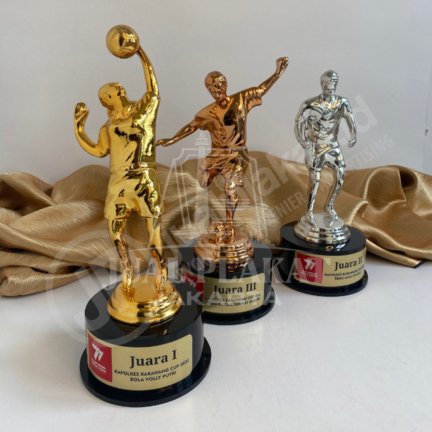 • Patung Atlet Dinamis: Setiap trofi menampilkan patung atlet yang sedang beraksi, seperti pemain voli dan sepak bola, yang memberikan kesan energik.