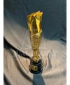 Terbuat dari material timah berkualitas tinggi yang melalui proses sepuh emas (gold plated), trophy ini memberikan kilau mewah yang presisi dan tidak mudah pudar.